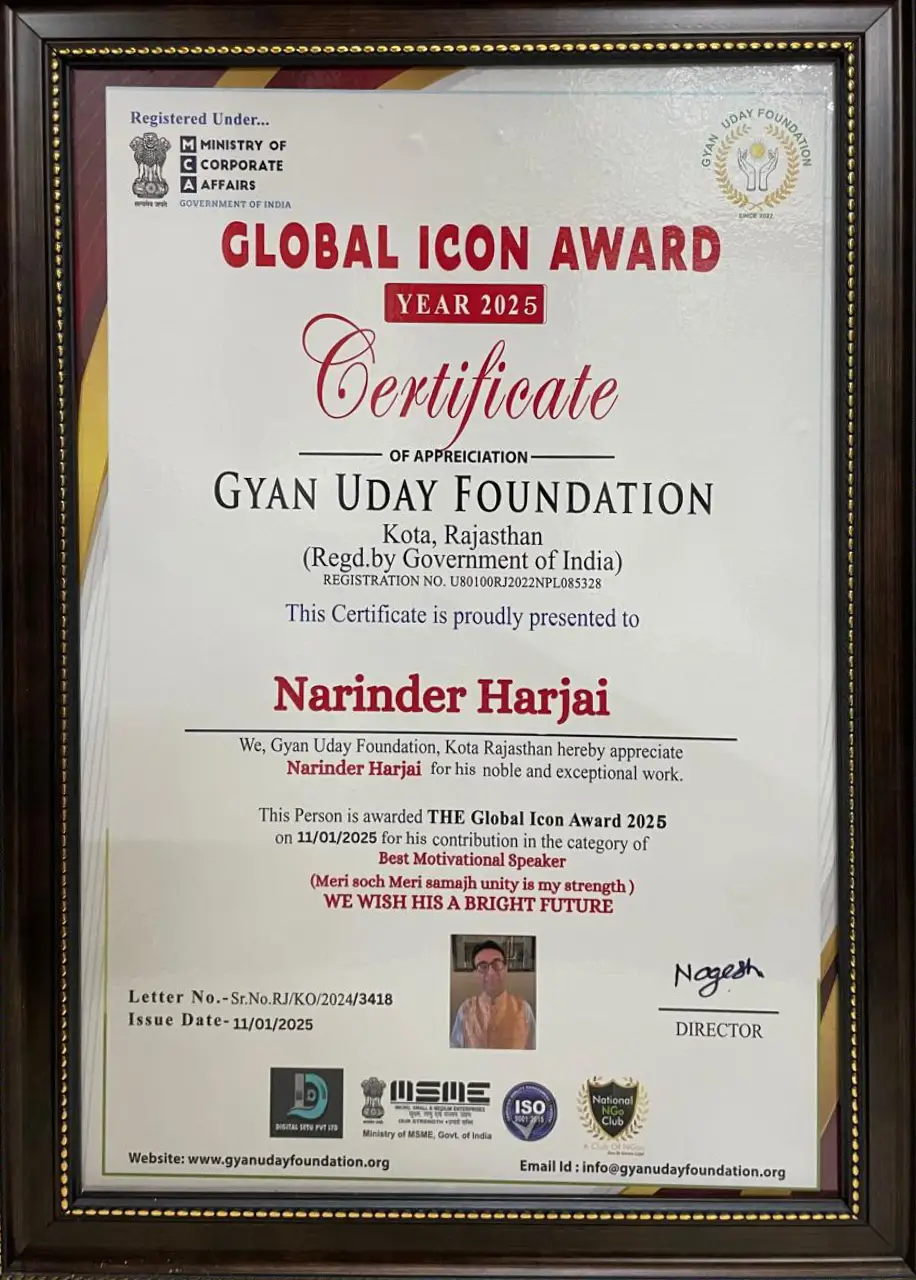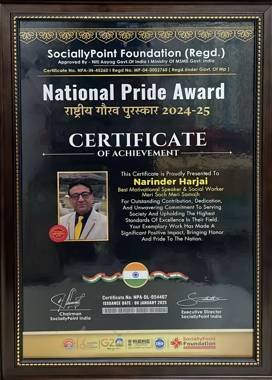 Dr. Narinder Harjai believes in the power of unity, self-growth, and transformation. His mission is to uplift individuals and organizations through motivation, leadership, and mindset coaching. With 15 years of experience, he has inspired countless people to unlock their true potential and achieve success.