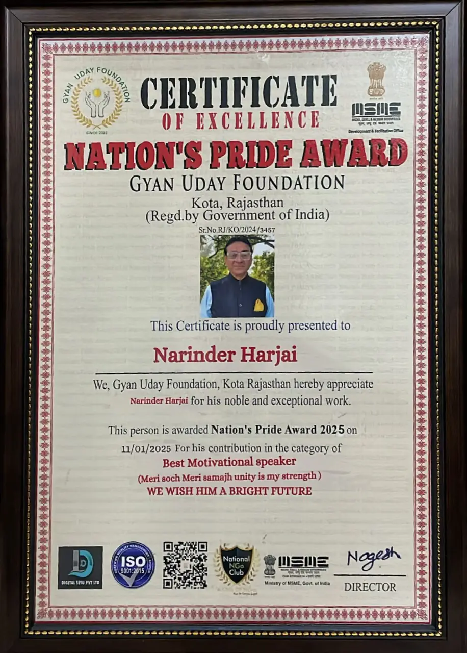 Join Narinder Harjai on a journey of growth and success! His powerful motivational sessions will help you build confidence, overcome challenges, and achieve your goals !